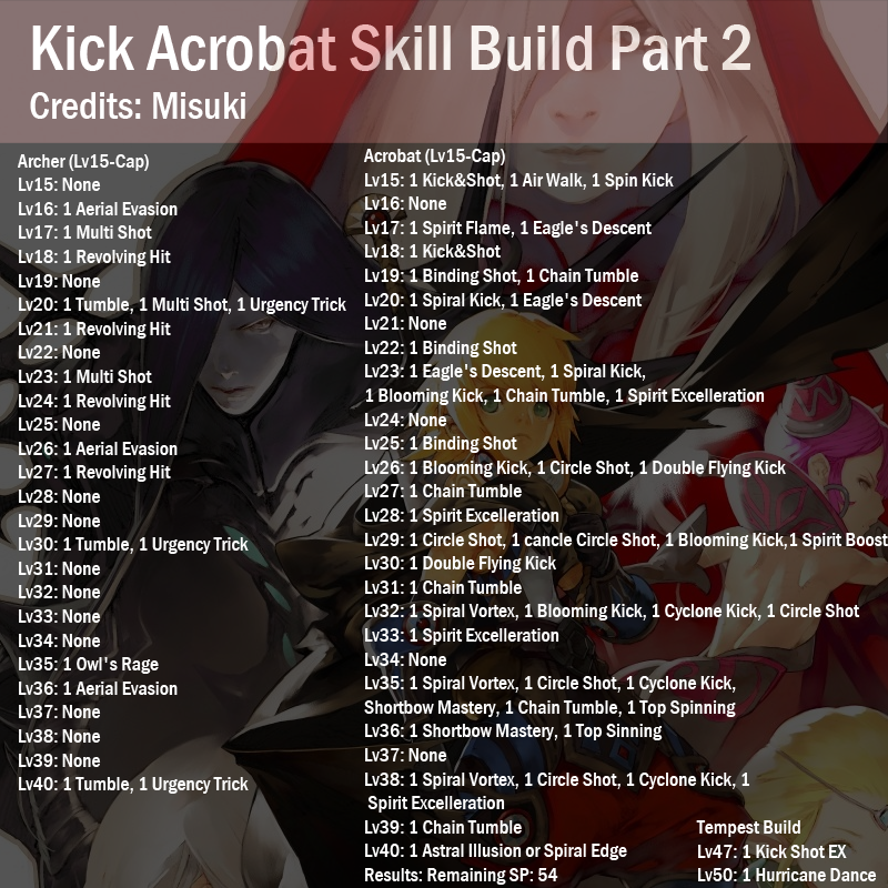 I've attempted to make a skill build according to the NA Dragon Nest. Please leave any opinions on changes toward skills. Also, I'm separating the Lv1-15 apart from the Lv15-cap (Archer & Acrobat) for future (if any) confusion.